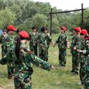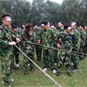 团队所有成员在看不见的情况下将绳子围成指定的图形。