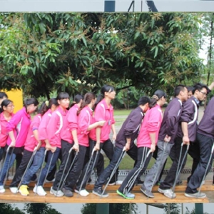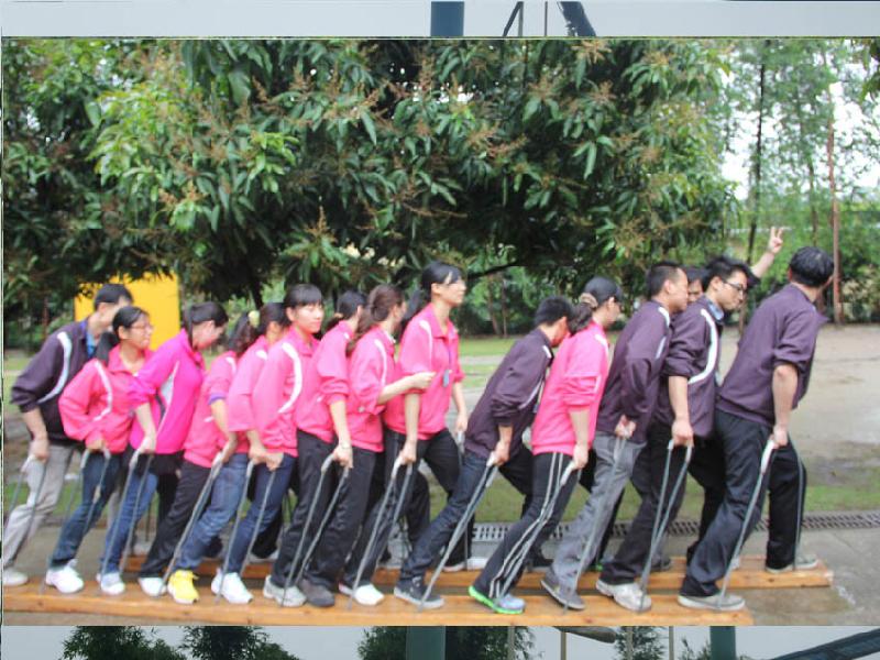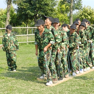 项目简介:所有队员进途中面对茫茫草地,静寂无声,怎样通过… …,全体队员两两相对,两只脚各站在一块木板上,按规定的路线前进