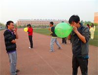 男女间隔排列,先男后女,以接力的形式,第一名同学跑到制定位置流吹气球,直到吹破。跑回原位置换下一个同学,如此轮换,以二分钟为限,计时完毕时按吹破气球个数记录成绩。